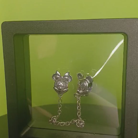 Елегантна верижка за сигурност с емблематичните главички на Мики и Мини Маус, изработена от сребро с проба S925. Част от колекцията Disney x Pandora, този аксесоар осигурява стабилност на гривната и добавя игрив чар, запазвайки стила на класическата двойка.