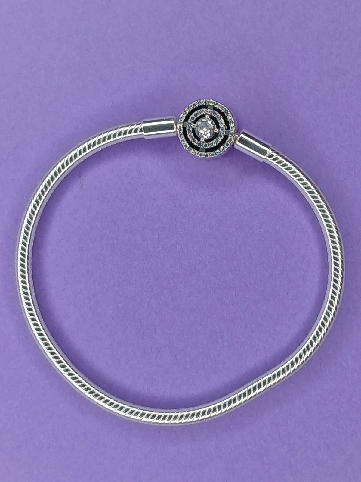 Елегантна гривна със символичен дизайн – два перпендикуляра във форма на кръст, обградени от блестящи цирконии. Отзад е изписано Pandora и над централната точка стои коронката с малък камък. Добави стил и индивидуалност с нашите бижута тип Pandora, създадени от сребро проба S925 с фино инкрустирани цирконии.