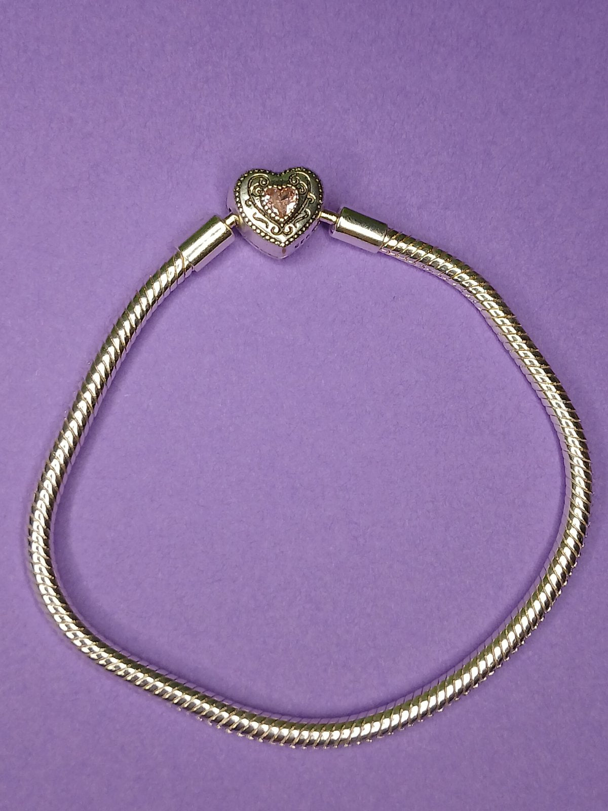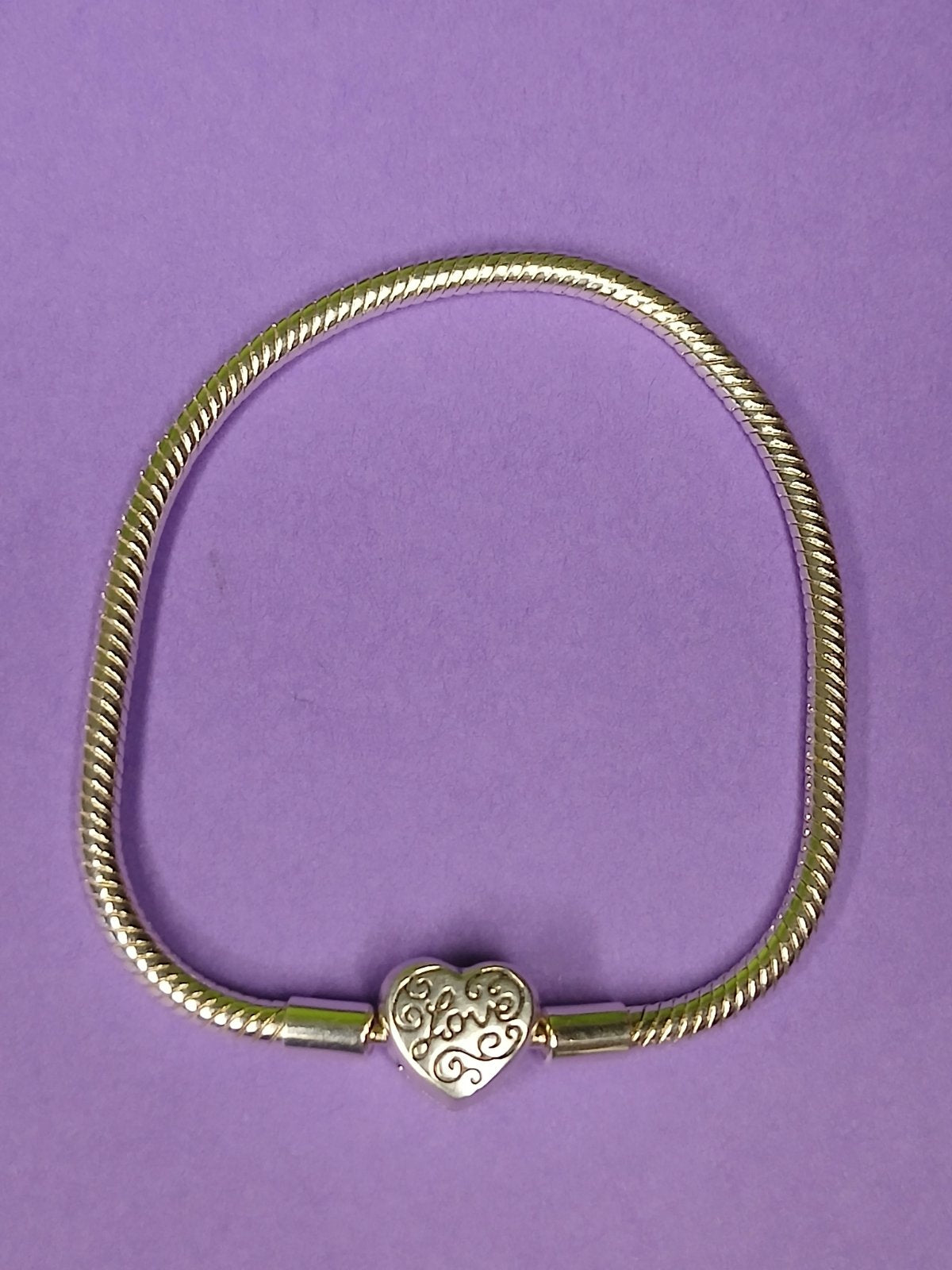 Гривна със сърце от розов цирконий, а на гърба е изписано love в ръкописен стил и фин растителен мотив. Романтична и женствена визия. Добави стил и индивидуалност с нашите бижута тип Pandora, създадени от сребро проба S925 с фино инкрустирани цирконии.