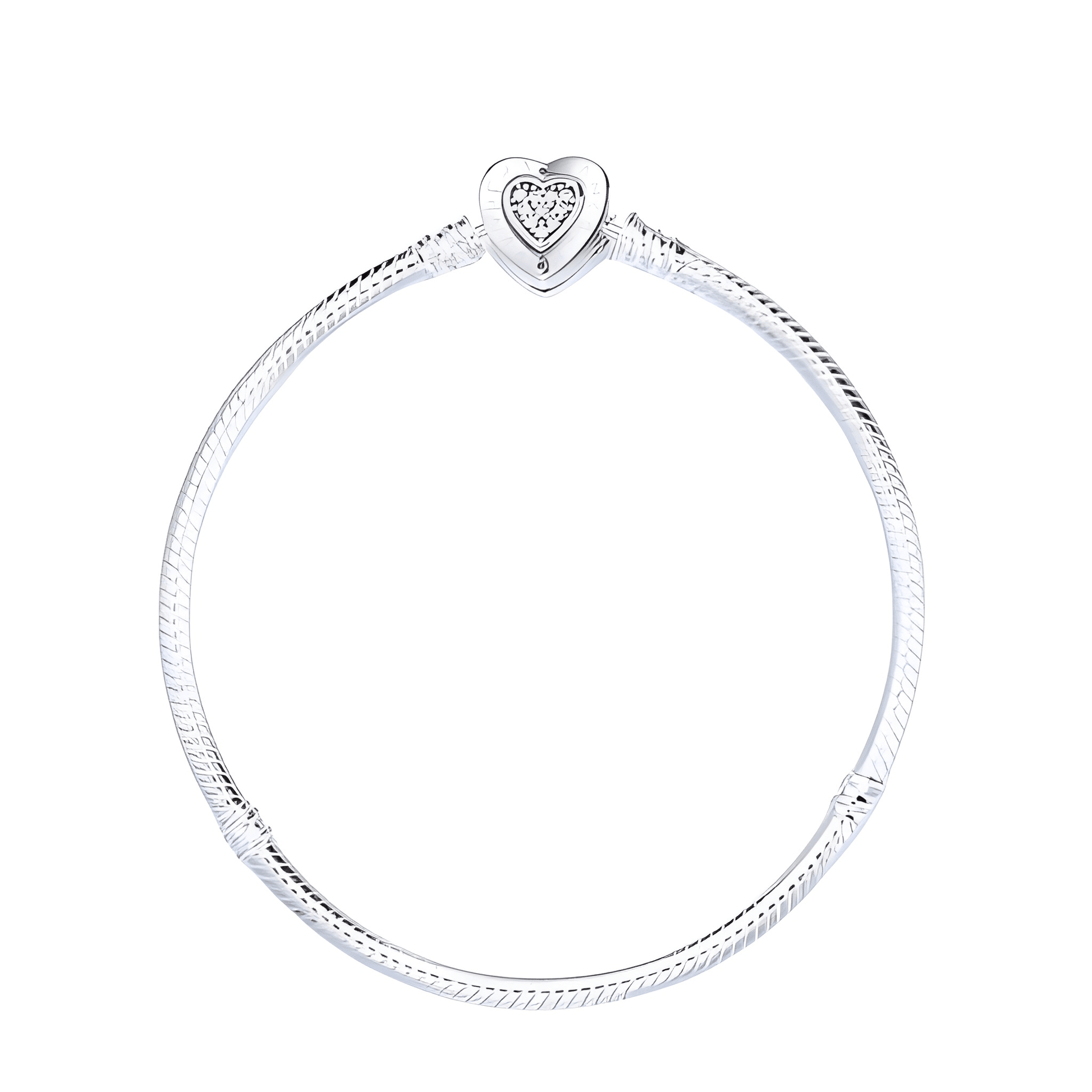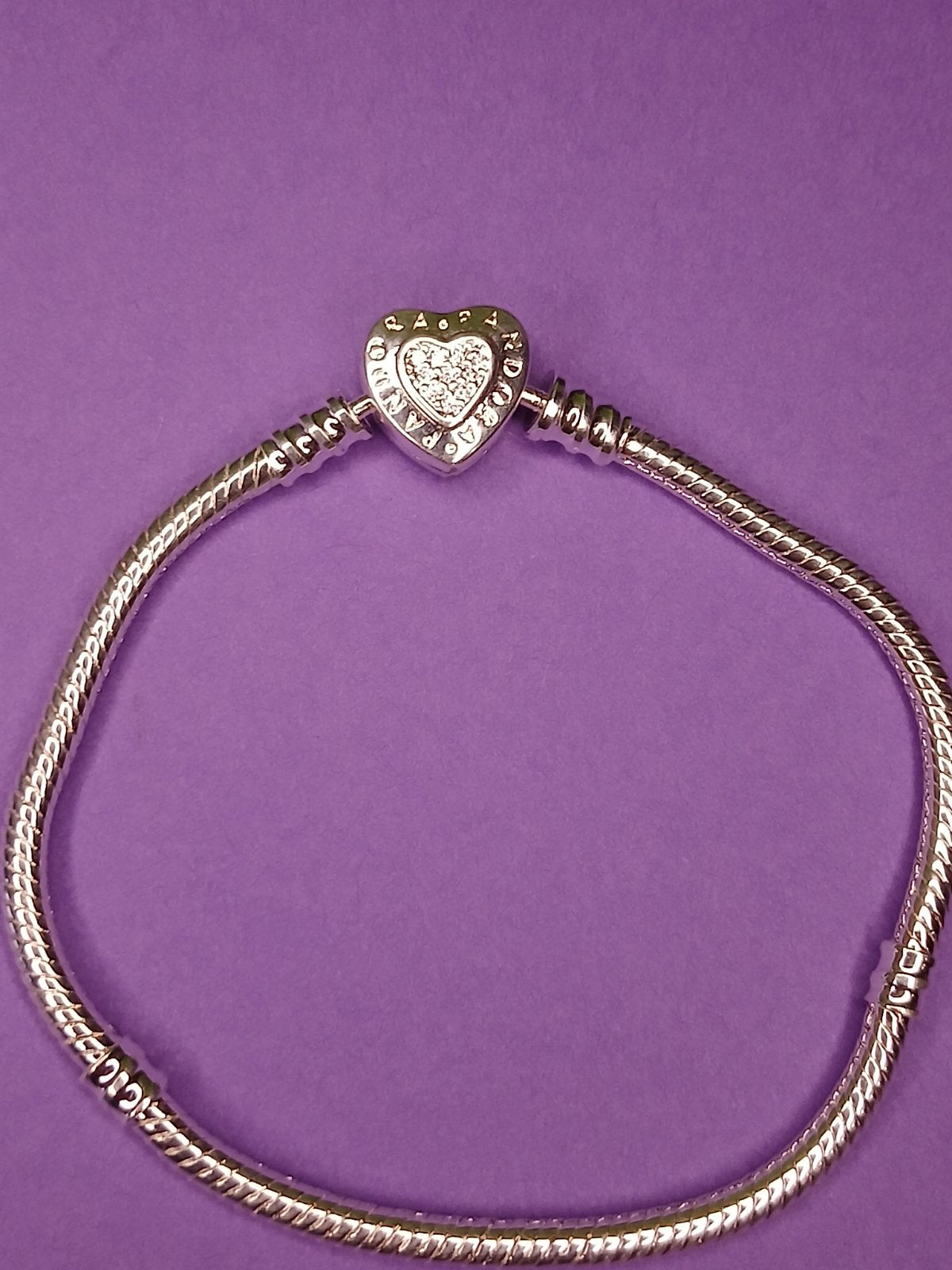 Нежна гривна с блестящо сърце от цирконии, обградено от изписан надпис Pandora. Еднаква от двете страни, символ на чиста и взаимна любов. Добави стил и индивидуалност с нашите бижута тип Pandora, създадени от сребро проба S925 с фино инкрустирани цирконии.