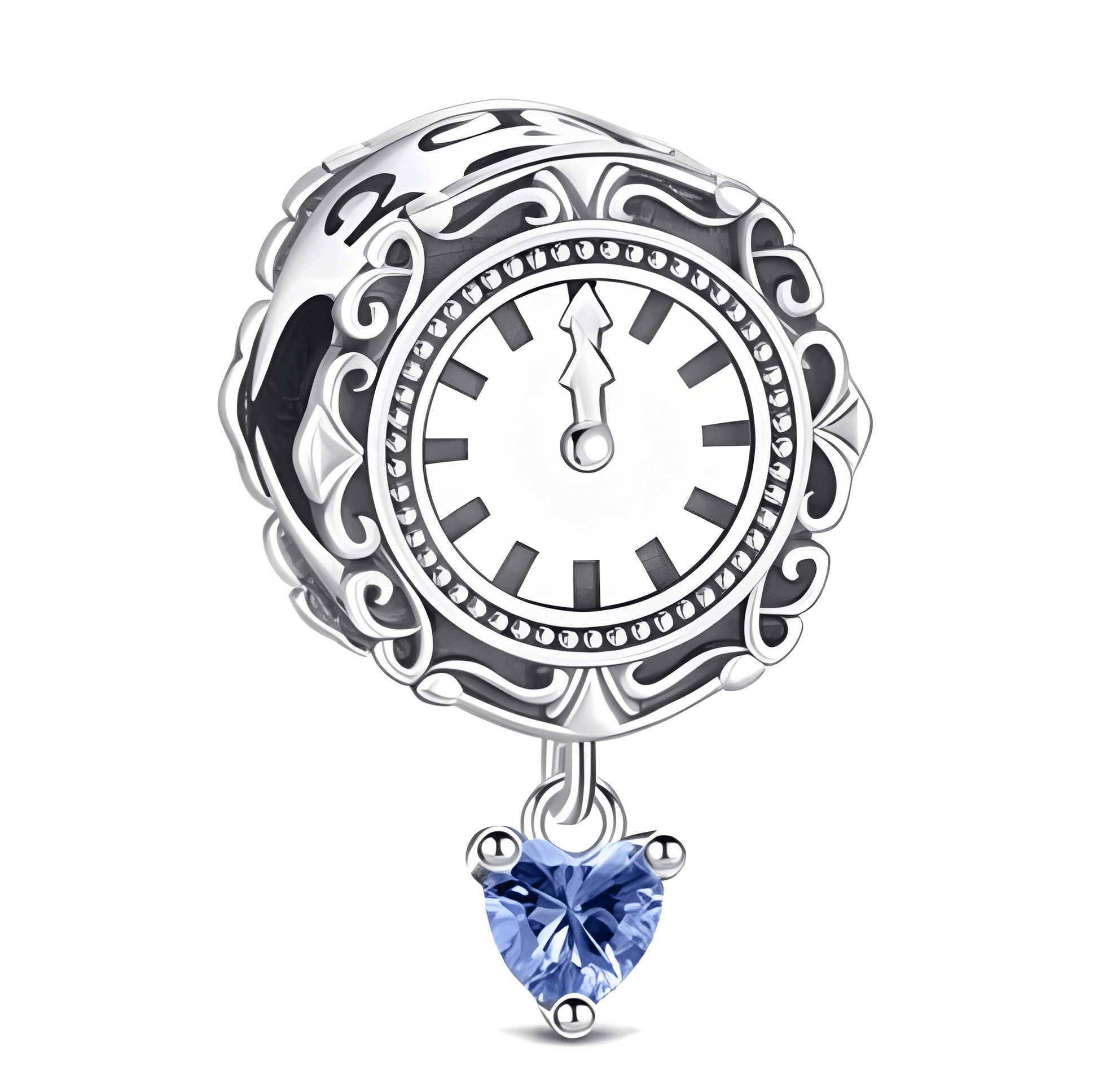 Висящ талисман от сребро проба S925 с декоративен циферблат и малък син камък от цирконий. Вдъхновен от приказния момент на Пепеляшка.